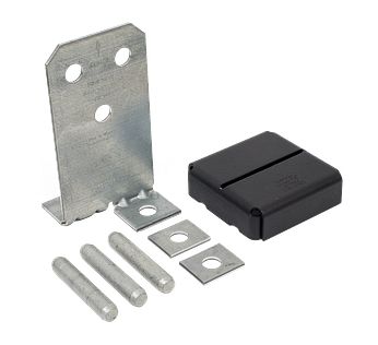 Knife plate, washers and standoff base are ZMAX®-galvanized steel. The standoff base has an additional textured, flat black powder-coat finish for aesthetic purposes. The 1/2"-diameter drift dowels are mechanically galvanized in accordance with ASTM B695, Class 55. If substituting 1/2"-diameter bolts, a hot-dip galvanized finish is recommended. Some available in stainless steel (see table).